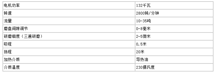 高速剪切均化磨技術(shù)參數(shù)(30T/小時(shí))
