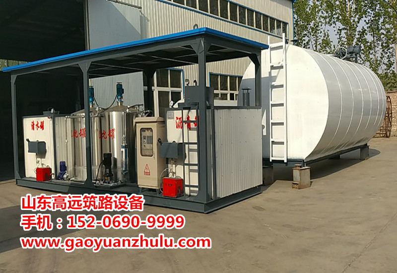 瀝青加溫罐、乳液摻配罐、水加溫罐、乳化劑反應(yīng)釜(兩個)、成品罐、調(diào)速瀝青泵、調(diào)速乳液泵、乳化機(兩臺)、管道泵、攪拌泵、成品輸送泵、數(shù)控系統(tǒng)、大底板、管道、閥門、過濾系統(tǒng)等組成。